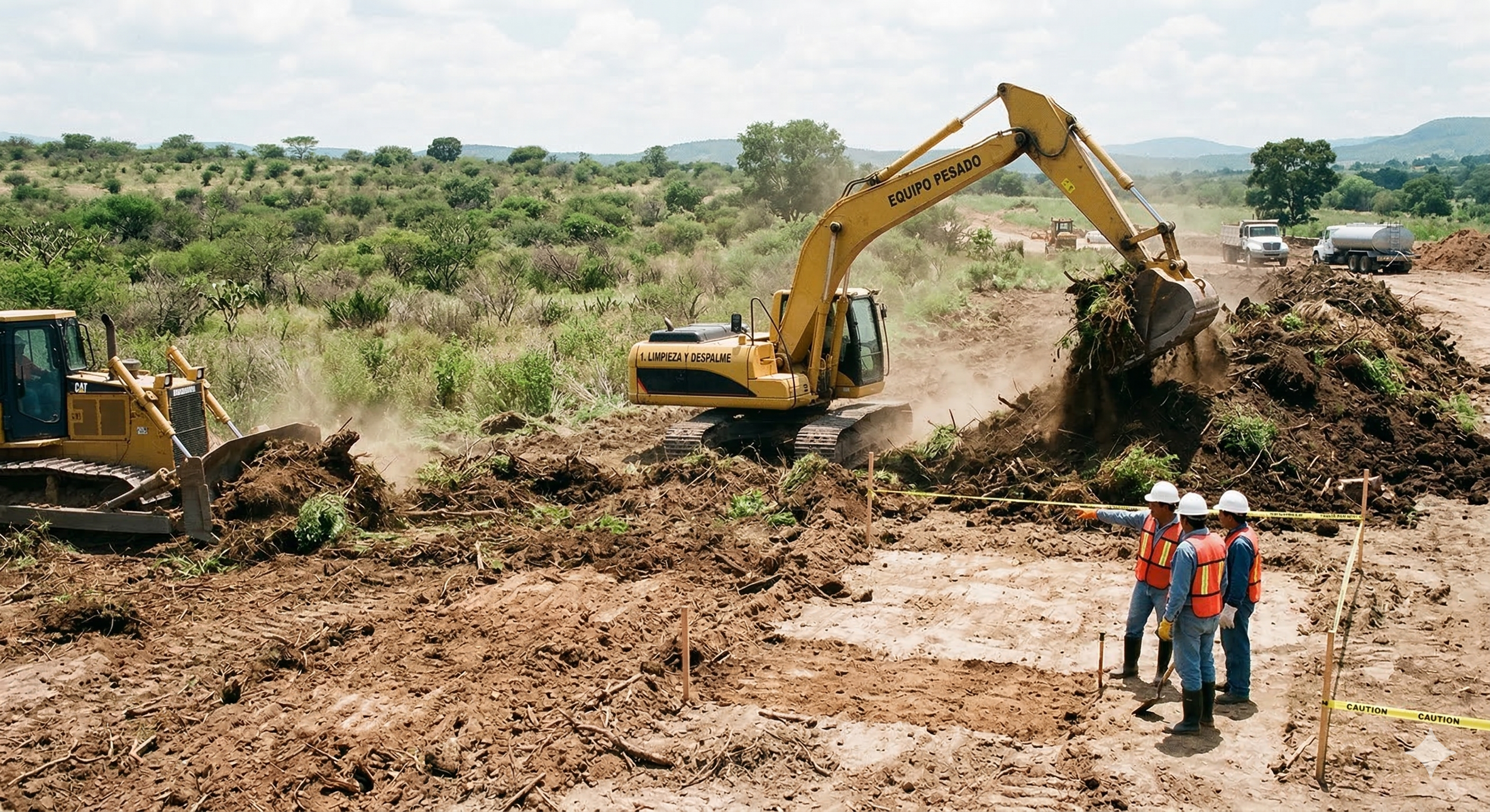 Ejecutamos trabajos de limpieza y despalme del terreno, consistentes en el retiro controlado de vegetación, residuos y capa orgánica superficial. Este proceso permite eliminar material inestable, dejando expuesto el suelo firme y adecuado para el inicio de las actividades de construcción, garantizando una base óptima para el desarrollo del proyecto.
