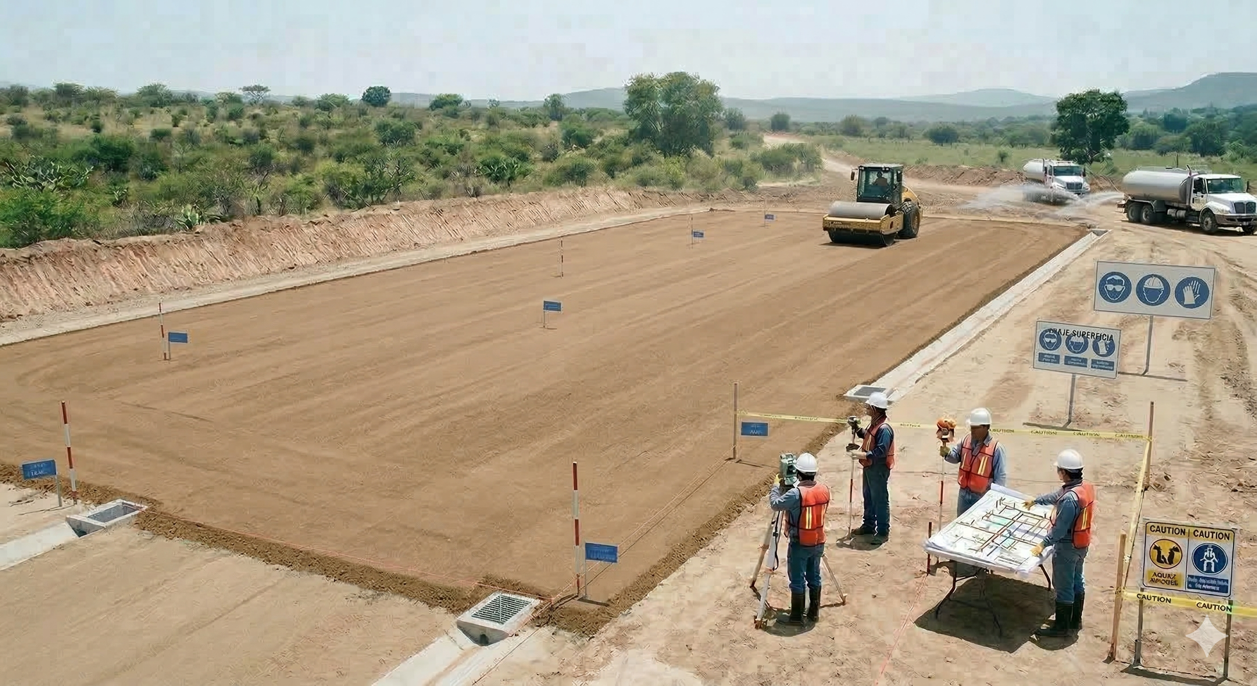 Llevamos a cabo la conformación y nivelación fina del terreno, asegurando un perfil preciso conforme a las especificaciones del proyecto ejecutivo. Realizamos el afinado de superficies, generando pendientes, bombeos y acabados de alta calidad en vialidades y plataformas. Este proceso garantiza una geometría adecuada, óptimo drenaje superficial y condiciones ideales para las siguientes etapas de construcción.