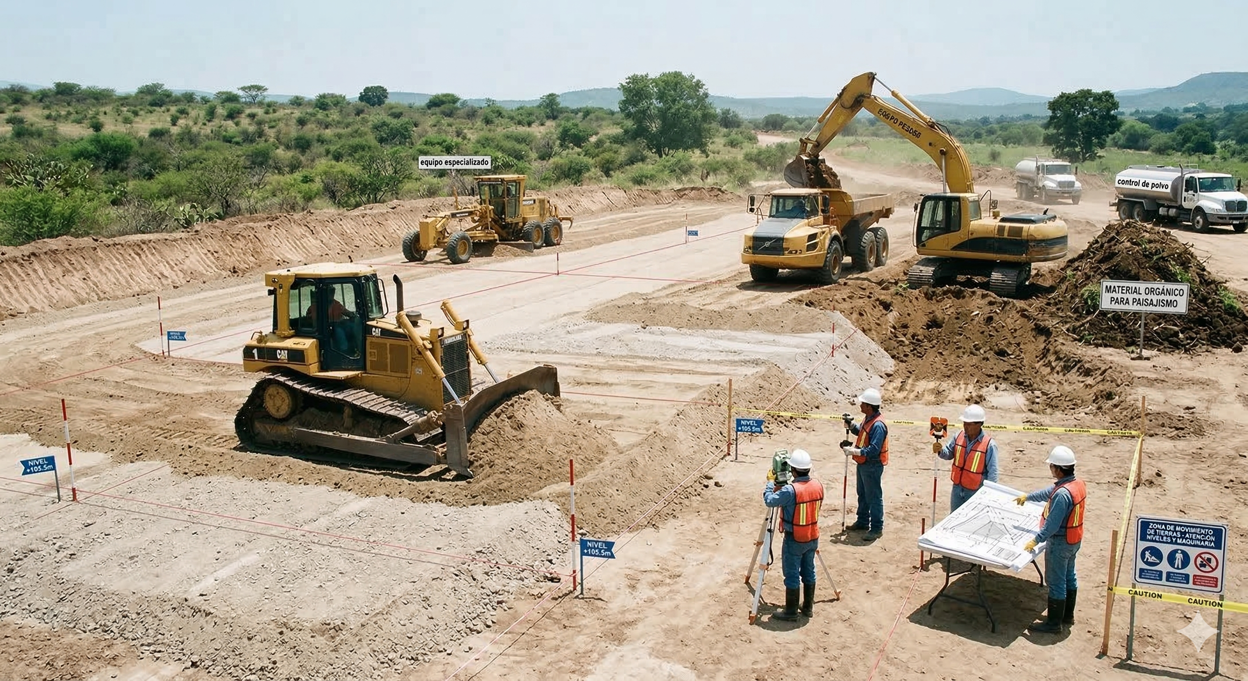 Ejecutamos trabajos de cortes y rellenos conforme a las especificaciones del proyecto ejecutivo, enfocados en la correcta conformación del terreno. A través del uso de maquinaria especializada como bulldozer, realizamos el empuje, distribución y ajuste de materiales para lograr los niveles requeridos. Este proceso permite alcanzar con precisión las cotas de diseño, garantizando una base estable, uniforme y adecuada para el desarrollo de las siguientes etapas constructivas.